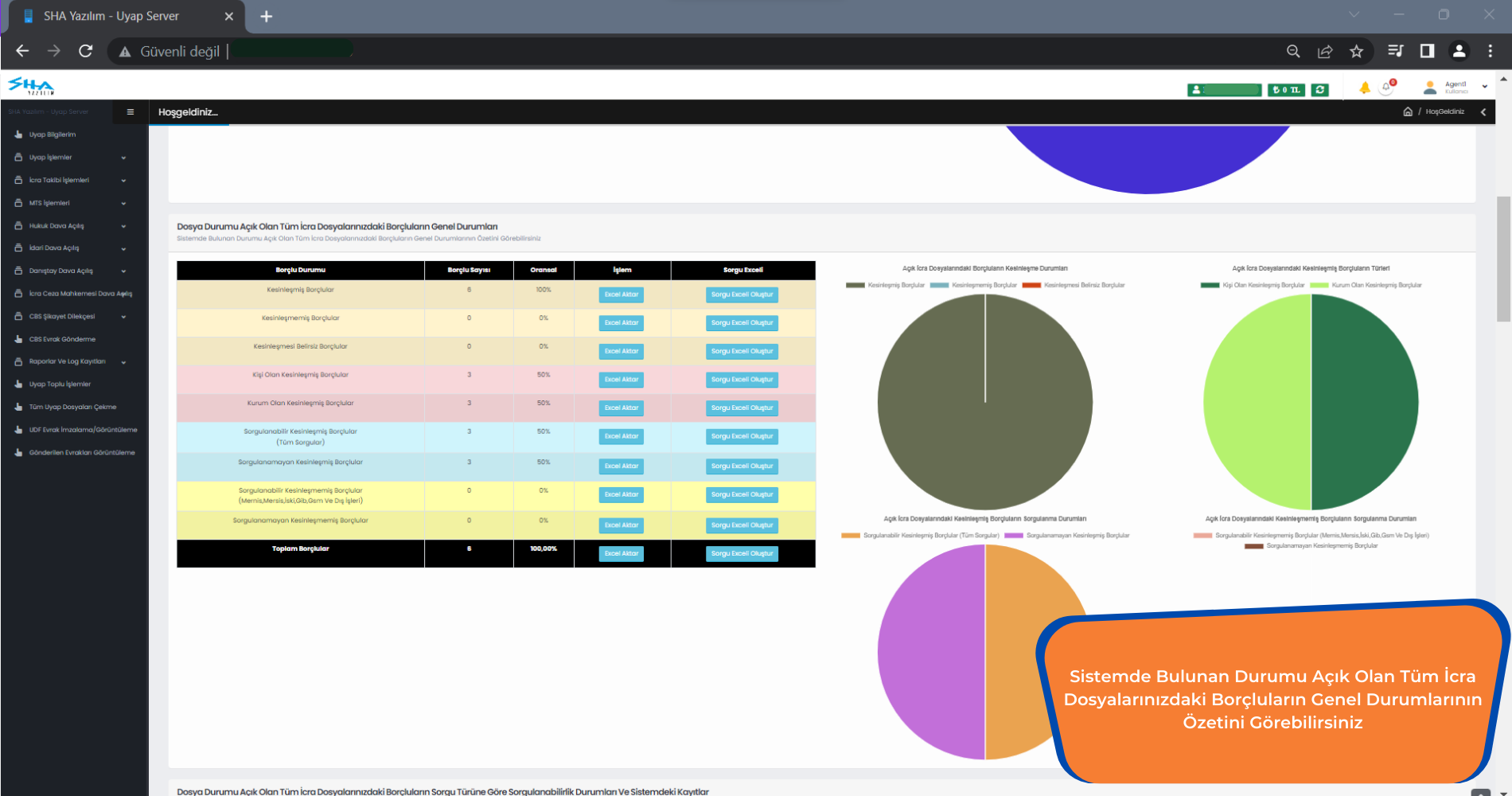 • Kullanıcılarınızın UYAP’ ta yaptığı tüm sorgu, ödeme ve işlemleri anlık olarak raporlayabilirsiniz.